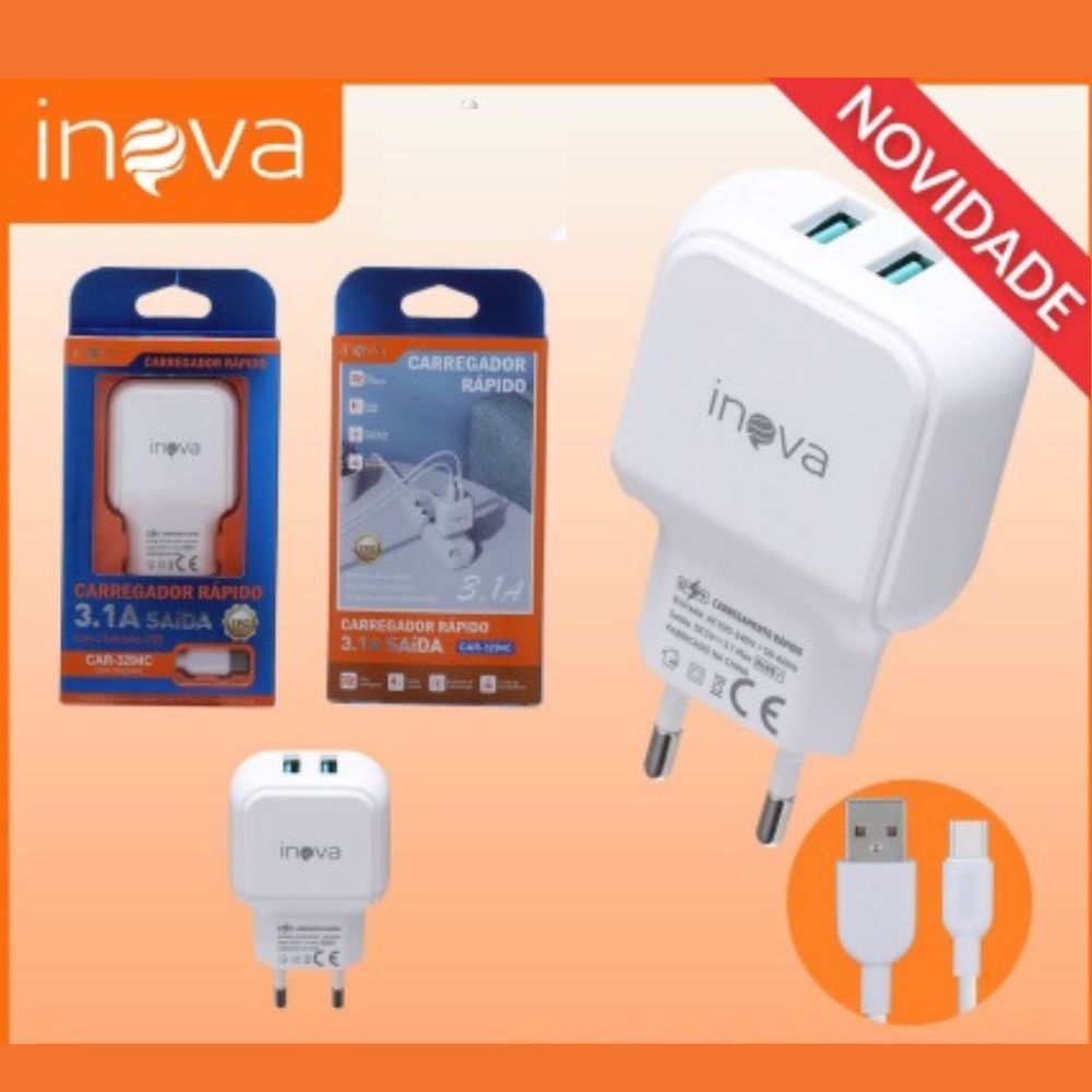 Carregador Rapido 3.1a tipo C Inova Car-3294c
